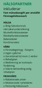 Genom att teckna FRISKVÅRD till arbetsplatsen ger man varje medarbetare en bättre möjlighet att ta egenansvar för sin hälsa. Man ser också till att man kan göra det till förmånliga priser på både tjänster, behandlingar hos både Lugnets Fysiocenter och dess samarbetspartners.